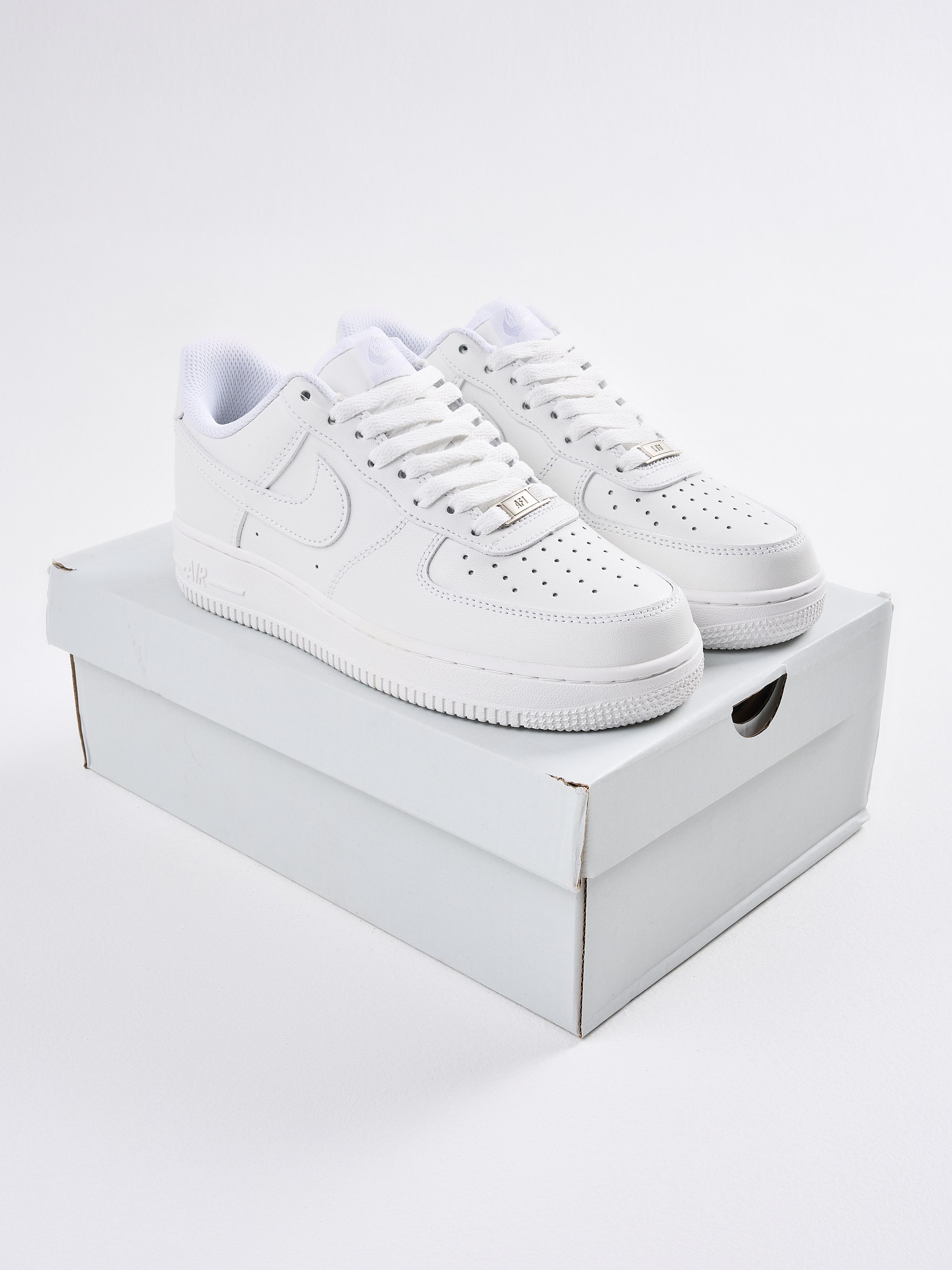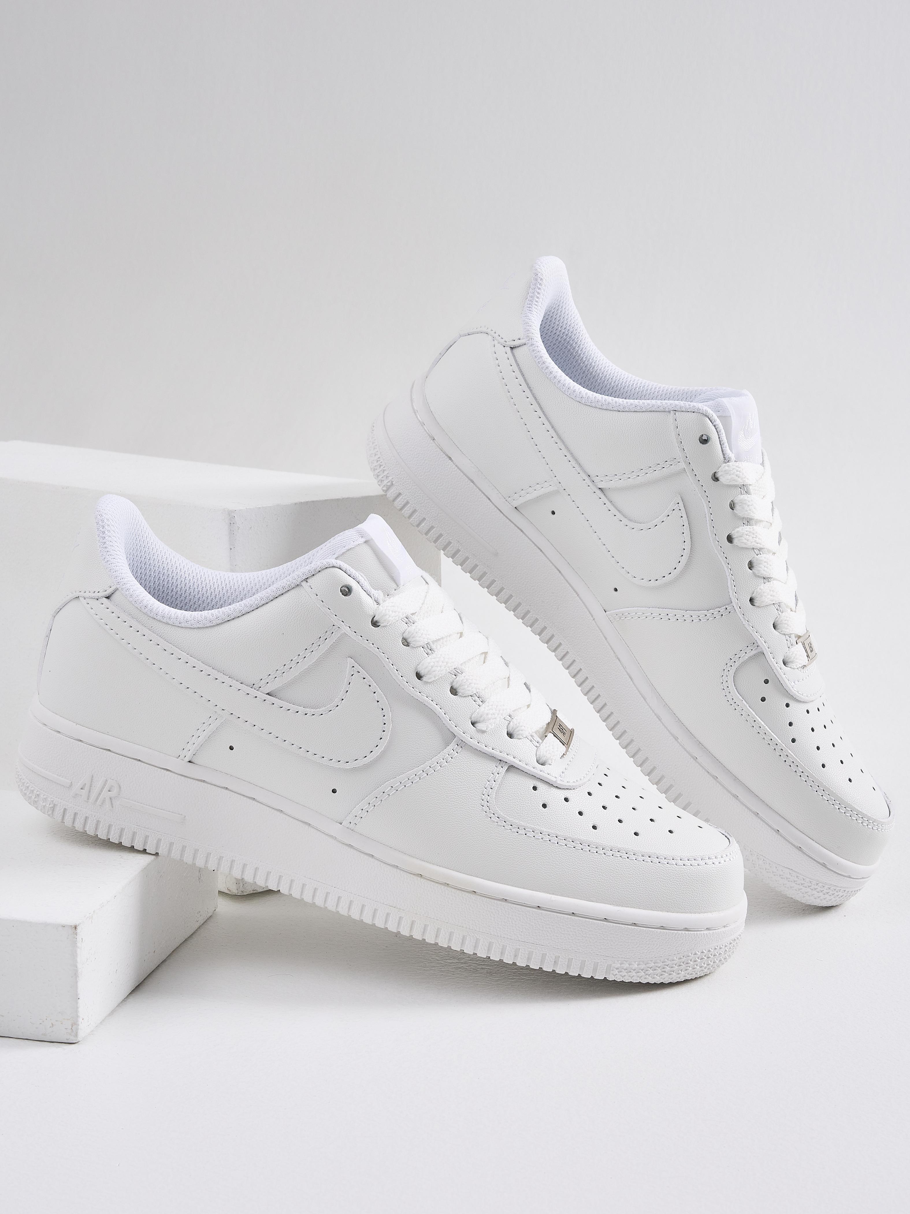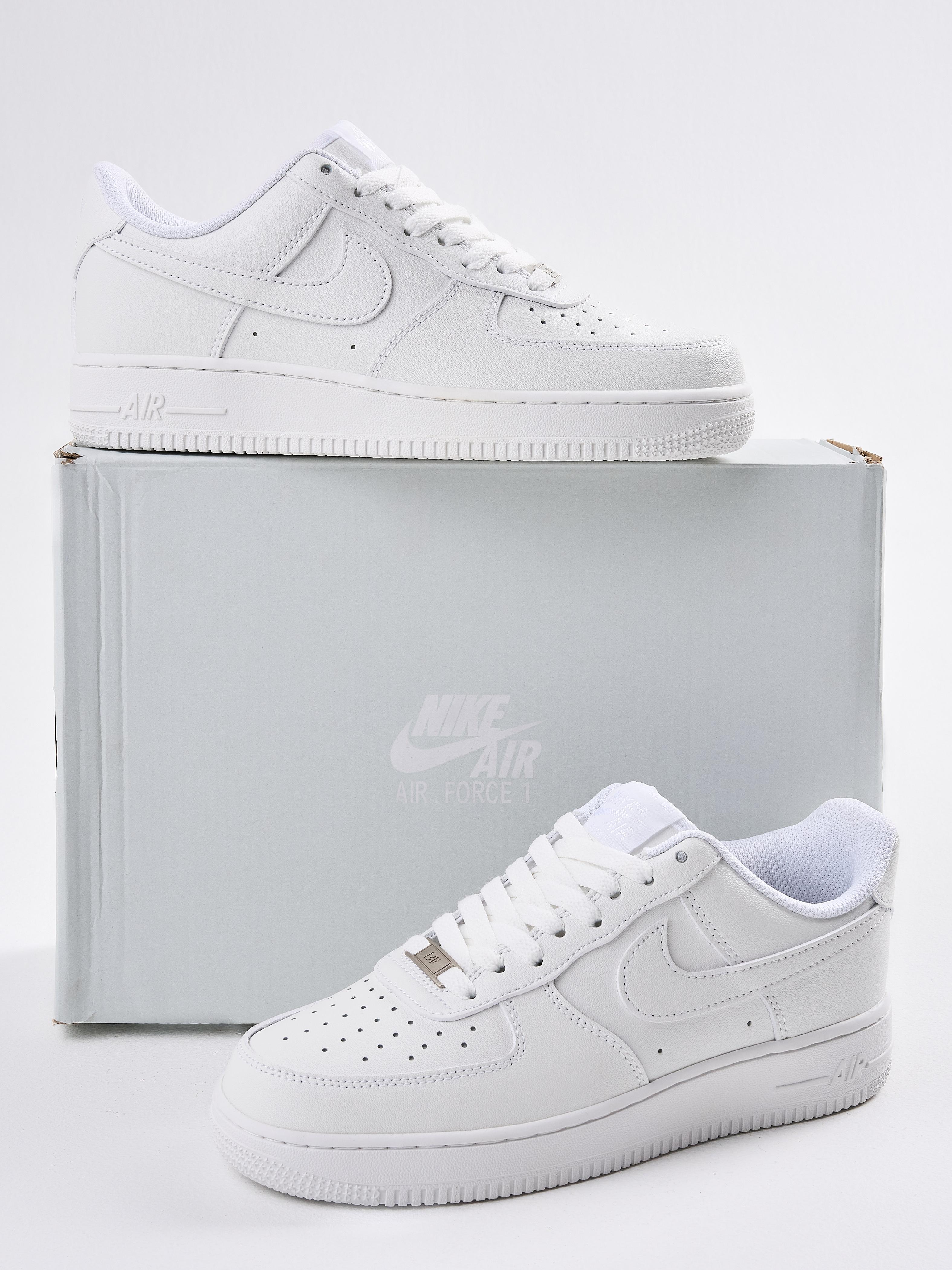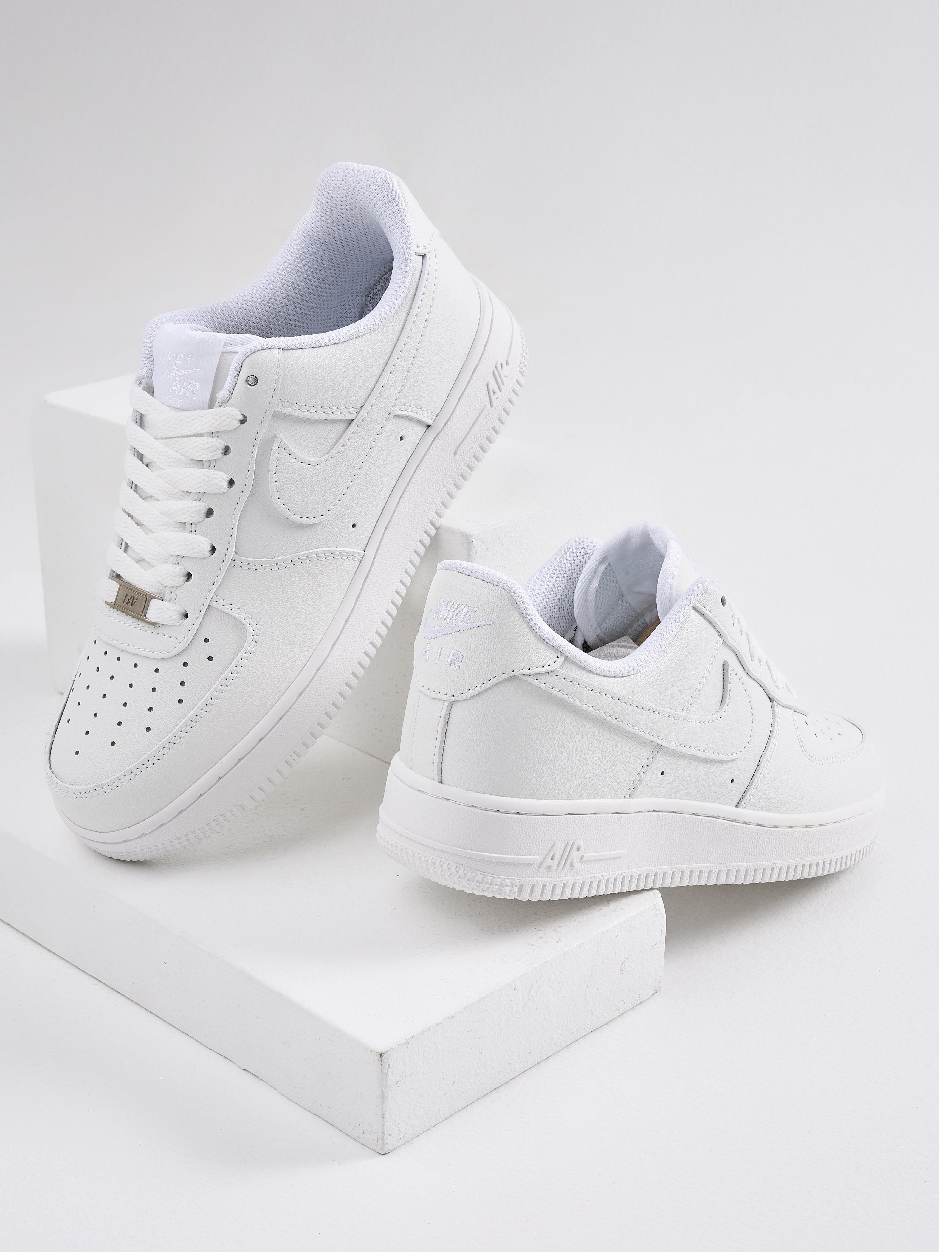 Кроссовки Nike Air Force 1 — это стильный и комфортный выбор для повседневной носки. Классический дизайн и белая расцветка делают их универсальным дополнением к любому образу. Изготовленные из качественной экокожи, эти кроссовки прослужат вам долго, сохраняя свой первоначальный вид. Шнуровка обеспечивает надежную фиксацию на ноге, а мягкий внутренний материал гарантирует комфорт в течение всего дня. Nike Air Force 1 — идеальный вариант для школы, прогулок с друзьями или просто для создания модного образа.